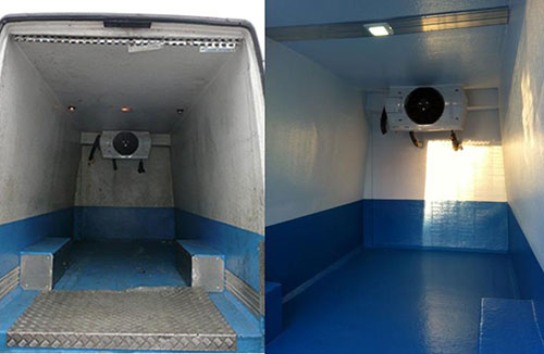 | Description: We refurbished this 2002 Mercedes Sprinter LWB for a customer - - SOLD - The existing 3 phase unit was removed and a reconditioned Hubbard unit was installed for road and single phase standby operation, new polar strip curtains were fitted. Full interior refurbishment, to foodsafe standards. This vehicle is sold. Contact us with your requirements for a refrigerated van. Let us know the size vehicle and operating temperature you require. |