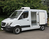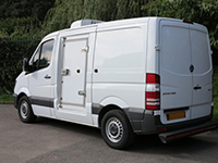 | Description: 64 plate Mercedes Sprinter 316 CDi, 3.5t GVW, SWB, 2.2l turbo diesel, air con, FSH, 140,000 miles, MOT 01/02/2020, 2 pallet capacity, Hubbard 460 unit, single phase standby, twin evaporators, Heat, chill or freeze from +25 to -25C, 12V trickle charger, barn doors, nearside plug side door 180 degree opening and magnetic door stay, chequer plate floor, aircon, Transcan temperature recorder. |
